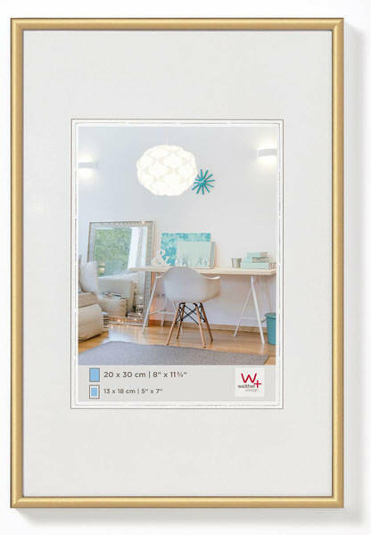 Műanyag keret 40x60 cm-es képhez Paszpartuval 30x45 cm-es képhez Arany szín Fémes festés A keret 40x60 cm-es képhez készült. Vékony, gömbölyű léccel, fémes hatású festéssel. Közepén perforációval, melyet kiemelve a megmaradt rész paszpartuként használható. Hátlapja farostlemez. Álló és fekvő helyzetben akasztható elhelyezéssel. Arany színben.