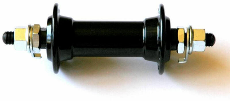 Trinity FM21 első kerékagy, 36H, csavaros, fekete Kedvező árú kónuszos első agy, 3/8-os csavaros tengellyel Papucstávolság: 100 mm Csapágyazás: kónusz - golyó Tengely: Cr-Mo 3/8x145x100 mm 3/8" colos tengelyanyákkal Tömeg: 222 g (anyákkal együtt mérve) Küllőhossz-számításhoz méretek: - Lyukkörátmérő bal és jobb oldalon: 38 mm - Peremtávolság bal és jobb oldalon: 14