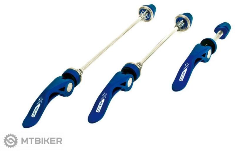 Titán gyorskioldó készlet első és hátsó kerékhez és nyeregcsőhöz, CrMo/alumínium, súlya 150 g. Műszaki megnevezés : QR-L05 Anyaga : CrMo / alumínium Súly : 150 g Szín : kék Csomag tartalma : tengely első és hátsó kerékhez, nyeregcsőhöz
