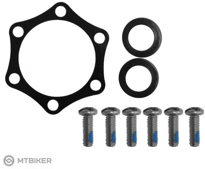 Adapter szabványos első agyhoz 15x100 mm-es tengellyel, lehetővé teszi a 15x110 mm-es Boost villába való beszerelésüket. A csomag 2 db 5 mm-es távtartó alátétet, 1 db 5 mm-es alátétet a féktárcsa alatt és 6 db M5x15 mm-es csavart tartalmaz.