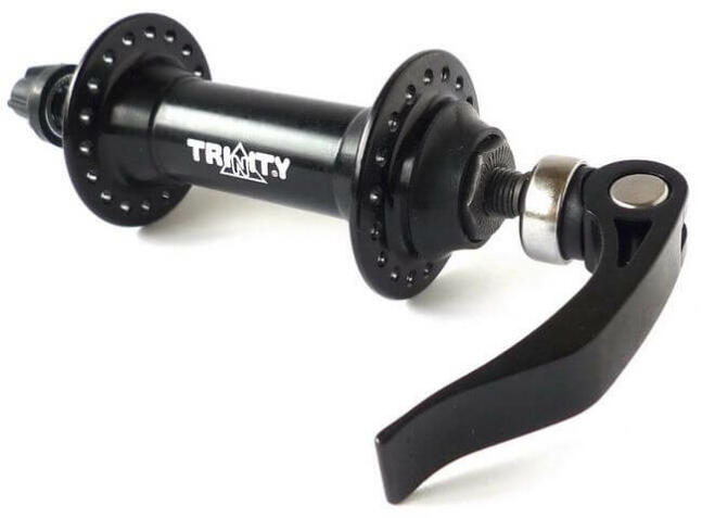 Trinity FM21 első kerékagy, 36H, gyorszáras, fekete Kedvező árú kónuszos első agy, 9 mm-es gyorszáras tengellyel (tartozék) Papucstávolság: 100 mm Csapágyazás: kónusz - golyó Tengely: Cr-Mo 3/8x145x100 mm Tömeg: 210 g (gyorszárral együtt mérve) Küllőhossz-számításhoz méretek: - Lyukkörátmérő bal és jobb oldalon: 38 mm - Peremtávolság bal és jobb oldalon: 14 mm Nem