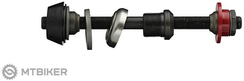 DT Swiss RWS hátsó tengely MTB kerékpárhoz, kivehető karral. Tengelyméret 12x148 mm, egyenes, menetes 1,5 mm-es osztással, teljes hossza 177 mm. Műszaki megnevezés: HWQASM00S2035S Cél: mountain bike Anyaga: alumínium Súly: 70 g Átmérő: 12 mm A tengely hasznos hossza : 148 mm A tengely teljes hossza: 177 mm Menet átmérő és menetemelkedés: M12 x 1,5 Menet hossza: 13 mm Leszállá