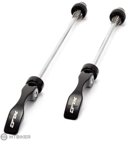Gyorskioldó készlet első és hátsó közúti kerekekhez, CrMo acél/alumínium, súlya 110 g. Műszaki megnevezés : QR-L02 Cél : országúti kerékpár Anyaga : CrMo acél / alumínium Súly : 110 g Szín : Fekete A csomag tartalma : 2 db gyorszár