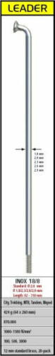 LEADER normál küllőSCFT-rendszer (Sapim Hidegen Kovácsolt Gyártástechnológia)Rozsdamente s acél- Átmérő: 2 mm- Használhatóság: BMX, Triatlon, MTB, Tandem, Moped, Sulky- Tömeg : 4,6 g / db (260 mm-es hosszban)- Fárasztópróba: 870000 kerékfordulat- Szilárdság: 1080 - 1180 N/mm a középső szakaszonA küllőanya jár hozzá (12mm) Nem ismered ez a márkát? Vidd a neve fölé a