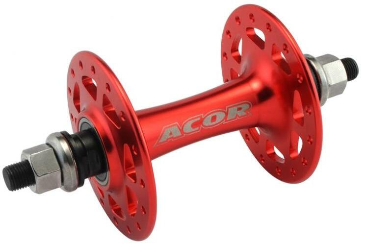 Acor AHU-21005 F pálya elsőagy- 7075 alu CNC test- 7075 alu tengely- Tömített csapágyak- Méret: M9 x 100 mm- Lyukszám: 32 vagy 36- Súly: 260 gramm (saját mérés, mindkét változaté megegyezik) Lyukszám : 32 Szín : piros Csapágyazás : ipari csapágyazás Perem magasság : magas Tengely típusa : 9 mm normáltengely Gyorszáras : nem Fék kompatibilitás : csak felnifék Agytest anya