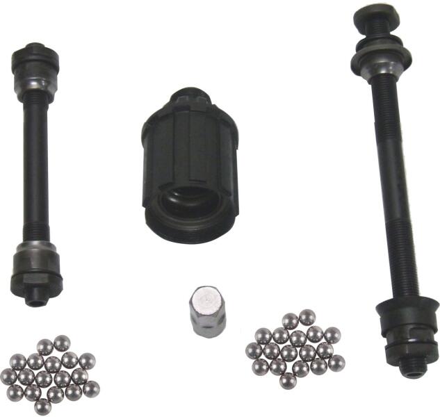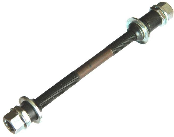 Kerékpár hátsó tengely 3/8"-os. 130/175mm. Porvédővel, tengelyanyával és kónusszal. Anyaga: Cr-mo