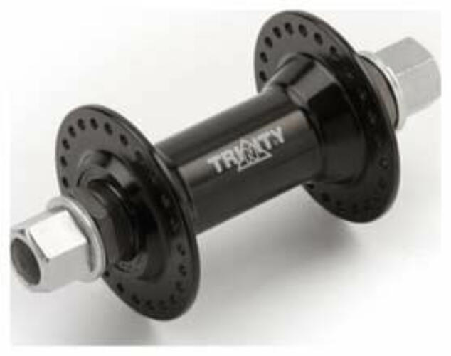 Trinity DX-41 BMX első kerékagy, 48H, csavaros, fekete Erős, de olcsó kerék fűzhető ebből a 48 furatos, 14-es tengelyű BMX agyból. Hobbi célra ajánljuk, de megfelelő karbantartással keményen küldheted neki, street, trails, park felhasználásra. Papucstávolság: 100 mm Csapágyazás: kónusz - golyó Tengely: Cr-Mo 14x145x100 mm Tömeg: 360 g Küllőhossz-számításhoz méretek:
