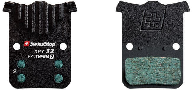 SwissStop ExoTherm 2 tárcsafék betét. E-compound alapokra épülő, hőelvezető 'fülekkel' ellátott betétcsalád. A jó höelvezetésnek köszönhetően a fékrendszer alacsonyabb hőmérsékleten működik, kímélve ezzel a féktestet, a féktárcsát és a betétet is. Ezek mellett csökkenti a fékerő csökkenés hosszú lejtőzős bringázásoknál. Az alábbi fékekkel használható: