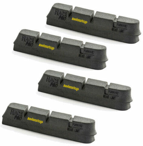 Tulajdonságok A SwissStop Race Pro "Black Prince" összetevőjű fékbetétje, karbon felnis kerekekhez. Kiváló moduláció, hideg időben és nedves időjárási körülények között is nagy fékteljesítmény. Fékhatásra az alumínium kerekek érzetét hozza a karbon felnin. Alábbi fékrendszerekhez használható: Campagnolo 10|11 sp szettek Alábbi fékrendszerekhez NEM használható: C