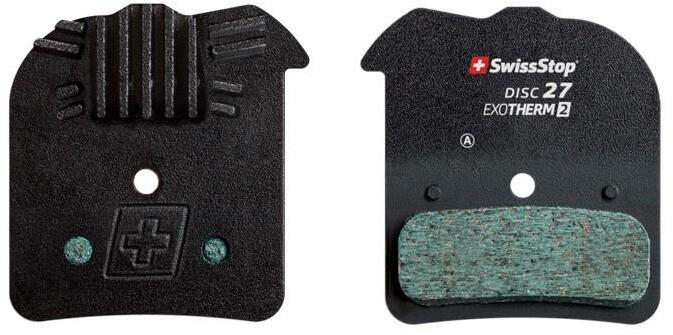 SwissStop ExoTherm 2 tárcsafék betét. E-compound alapokra épülő, hőelvezető 'fülekkel' ellátott betétcsalád. A jó höelvezetésnek köszönhetően a fékrendszer alacsonyabb hőmérsékleten működik, kímélve ezzel a féktestet, a féktárcsát és a betétet is. Ezek mellett csökkenti a fékerő csökkenés hosszú lejtőzős bringázásoknál. Az alábbi fékekkel használható: