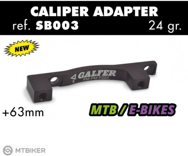 Tárcsafék adapter, PM-PM típus, 63 mm-es emelés, 160 mm-ről 223 mm-re. Galfer Post Mount-Post Mount adapter, amely +63 mm-rel növeli a féknyereg rögzítését. Az adapter 160 mm-ről 223 mm-re növeli az első és a hátsó fékeket. Az adapter súlya 29 g. Műszaki megnevezés: SB003 Anyaga: alumínium ötvözet