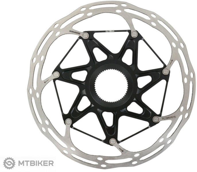 Centerlock tárcsa 180 mm átmérőjű alumínium hordozóval a jobb hőelvezetés érdekében. Sram Centerline X féktárcsa alumínium hordozóval a nagyobb hőelvezetés és nagyobb merevség érdekében. Centerlock rögzítés. Lekerekített változat - a tárcsa lekerekített éle a nagyobb biztonság érdekében. Műszaki megnevezés: 00.5018. 037.010 Átmérő: 180 mm Anyaga: rozsdamentes a