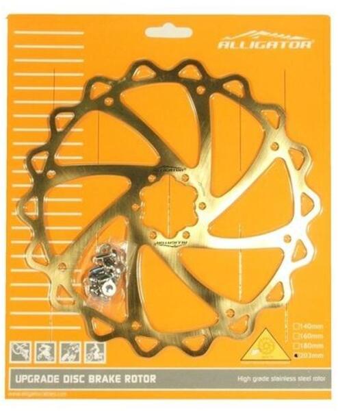 Alligator HK-R18 féktárcsa 160 mm átmérővel, 6 csavaros rögzítéssel. A tárcsa súlya 78 g, csavarokkal együtt szállítjuk. Tárcsa rögzítés : INTL - 6 csavar Műszaki megnevezés : HK-R18 Anyaga : rozsdamentes acél/acél Szín : zöld A csomag tartalma : tárcsa, csavarok Súly : 78 g