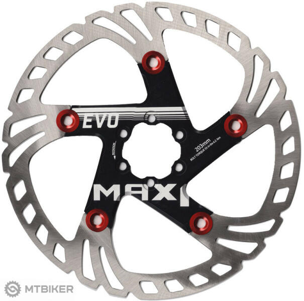 Féktárcsa MAX1 EVO 203 mm alumínium tartóval. A tárcsa rendkívül hőálló 410 rozsdamentes acélból, a meghajtó AL7075 alumíniumötvözetből készült. Felületkezelés 42HRC. A féktárcsa formája nagyon jó hűtést biztosít. Ultrakönnyű kivitel. Nagy hatékonyság minden körülmények között. Kiváló méretstabilitás az Alu tartószerkezetnek köszönhetően. Súly: 150 g A
