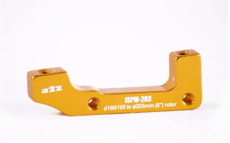 IS villa- PM féktest adapter első 200/203mm-es vagy hátsó 180/185mm-es tárcsához. A megfelelő tárcsaméretet a hézagoló alátétek cserélgetésével lehet beállítani. Többféle színben. Rögzítő csavarokkal és alátétekkel.