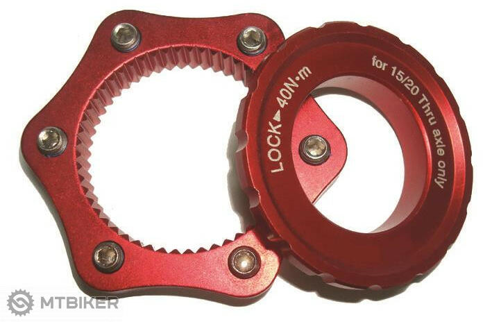 Adapter 6-lyukú Shimano Center Lock agyokhoz 15/20 mm-es tengellyel. Piros szín. Műszaki megnevezés: A2Z CLK Anyaga: Al Átmérő: tengely 15 mm