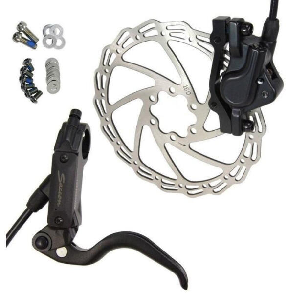 1600mm hosszú fékcső 160mm 6 csavaros féktácsa jobbos fékkarral tárcsafék adapterrel rögzítő csavarokkal összeszerelve, feltöltve