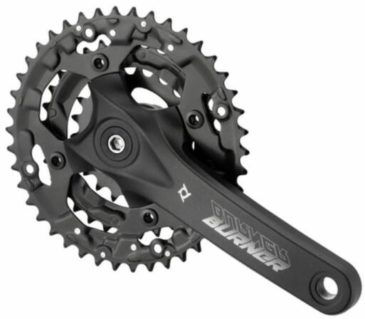 Prowheel Burner 401-N négyszögtengelyes MTB hajtómű, 22-32-44T, 175 mm, alumínium, fekete Négyszögtengelyes MTB hajtómű sport MTB bicajokra Négyszög tengelyrögzítés Hidegen kovácsolt alumínium hajtókar 6-7-8 sebességes rendszerekkel kompatibilis Alu nagy, acél közepes és kis lánckerekek, műanyag nadrágszár védővel Fogszám kiosztás: 22-32-44 fog, a lánckerekek imbuszcs