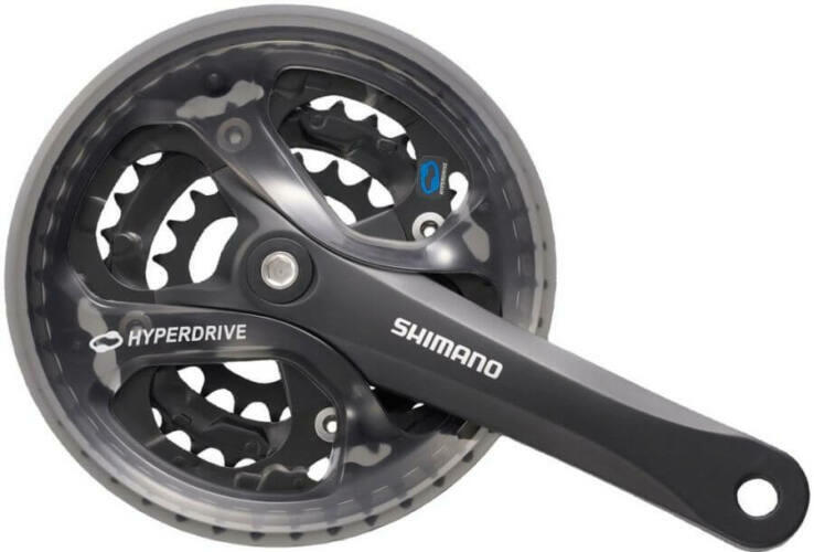 Shimano Acera FC-M361 négyszögtengelyes hajtómű, 22-32-42T, 175 mm, fekete FC-M361 Shimano Acera belépő szintű MTB hajtómű hobbi MTB kerékpárokra. Hagyományos-, négyszög tengelyes rögzítés Hidegen kovácsolt kar 7-8 sebességes rendszerekkel kompatibilis 175 mm-es karhosszal! Acél Hyperdrive SG-X lánckerekek Fogszám kiosztás: 22-32-42 fog Nadrágszár védővel A középrész