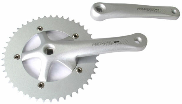 Prowheel Solid 246T-F négyszögtengelyes hajtómű, 46T, 1s, 170 mm, alumínium, ezüst Közép kategóriás 1 sebességes hajtómű elsősorban fixi, single-speed kerékpárra. Négyszögtengelyes (JIS) (javasolt tengelyszélesség: 110,5 mm) Kar anyaga: alumínium Lánckompatibilitás: 3/32" (7-9 seb) Láncvonal: 44 mm Lánckerék anyaga: alu Lánckerék rögzítés: 130 mm-es lyukkörátmérő