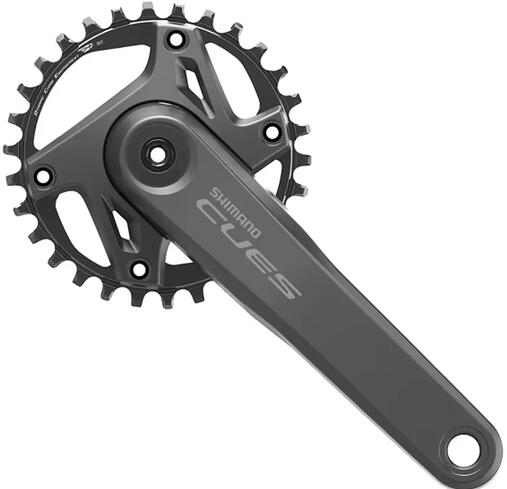 Shimano Cues FC-U6000-1 Linkglide integrált tengelyes hajtómű, 32T, 1x9s, 1x10s, 1x11s, 175 mm, szürkeA Shimano Cues teljesen új középkategóriás váltórendszer, mely a korábbi Acera, Altus, Alivio rendszereket váltja fel teljes mértékben. Kapható 1x9, 1x10 és 1x11 sebességes változatban is. A korábbihoz képest háromszoros élettartam, nagyobb váltási pontosság és egyszerű