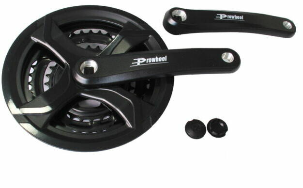 Prowheel MPE-401 négyszögtengelyes MTB hajtómű, 22-32-42T, 3x9, 175 mm, alumínium, feketeBelépő szintű négyszögtengelyes MTB hajtómű hobbi-sport MTB kerékpárokra. Hidegen kovácsolt 6061-T6 alumínium hajtókar Felületkezelés: matt fekete anodizálás 9 sebességes rendszerekkel kompatibilis Acél lánckerekek, melyek szegecseltek, nem cserélhetők Láncvonal: 50 mm Fogszám kiosz