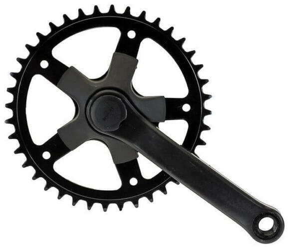 Neuzer négyszögtengelyes single speed gyerek hajtómű, 40T, 152 mm, acél, fekete18-20-24 colos gyerekkerékpárokra ajánlott egysebességes, kedvező árú hajtómű Négyszöges tengelyrögzítés Hajtókar: 152 mm, acél Acél lánckerék, nadrágszár védő nélkül 1 sebességes rendszerekkel kompatibilis. Fogszám kiosztás: 40 fog, lánckerék szegecselt rögzítésű, nem bontható M