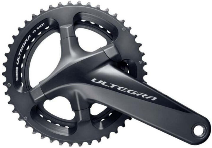 Shimano Ultegra FC-R8000 integrált tengelyes országúti hajtómű, 36-46T, 2x11s, 172,5 mm, sötét szürke Shimano Ultegra dupla, felső kategóriás országúti hajtómű integrált tengellyel. A hatékony erőátvitelre optimalizált hajtókar még merevebb, változatlan tömeg mellett Hollowtech II, üregesre kovácsolt kar, integrált tengellyel 4 furatos alu lánckerekekkel (110 mm) Láncv
