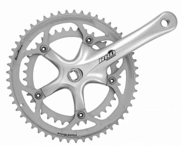 SunRace FCR8183 négyszögtengelyes országúti hajtómű, 39-53T (+42-52T), 2x8s, 170 mm, alumínium, ezüstOrszágúti hajtókar szett 8 sebességes rendszerhez A szett tartalmaz a gyári 53/39-es tányérokon kívül 1db 52-es 1db 42-es lánctányért is! SuperFluid Drive váltást könnyítő rendszer Hajtókarhossz: 170mm Lánkerekek anyaga: acél Cro-Mo lánckerék csavarok Lyukkör: 130mm A
