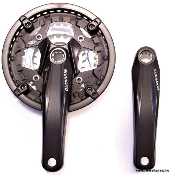 MTB hajtómű. 3x6/7/8 sebességes rendszerekhez. Hajtókarhossz: 175 mm. Fogkiosztás: 24-34-42. Tourney szint. Négyszögtengelyes. Könnyű, megbízható váltás. Láncvédővel.