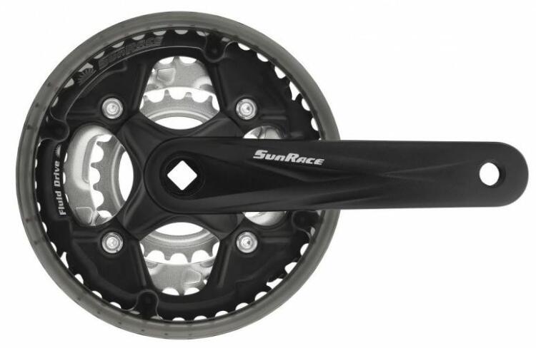 SunRace FCM500 négyszögtengelyes MTB hajtómű, 24-34-42T, 3x7-8s, 170 mm, alumínium, fekete Sunrace FCM500 négyszögtengelyes hajtómű 7/8 sebességes rendszerhez Super Fluid Drive rendszer Acél lánctányérok Alumínium hajtókarok Láncvédős kialakítás Ajánlott monoblokk tengelyhossz: 127 mm (50 mm láncvonalhoz) Tömege: 970 g Segíthetünk az optimális tengelyhossz kiválasztás