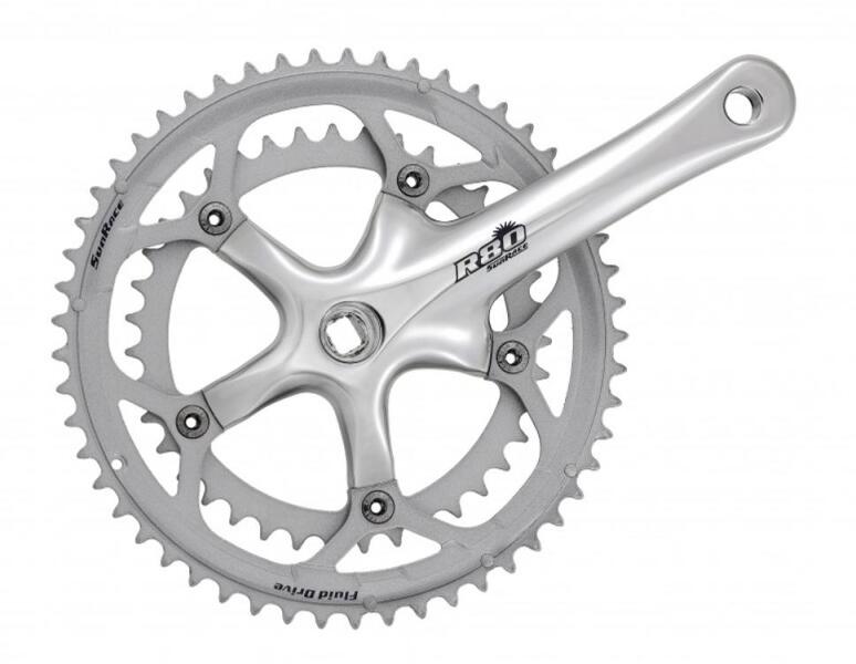Országúti hajtókar szett 8 sebességes rendszerhez A szett tartalmaz a gyári 53/39-es tányérokon kívül 1db 52-es 1db 42-es lánctányért is! SuperFluid Drive váltást könnyítő rendszer Hajtókarhossz: 170mm Lánkerekek anyaga: acél Cro-Mo lánckerék csavarok Lyukkör: 130mm Ajánlott tengelyhossz: 107mm Tömege: 906 g (53/39-es lánctányérokkal) 899 g (52/42-es lánctányérokkal)