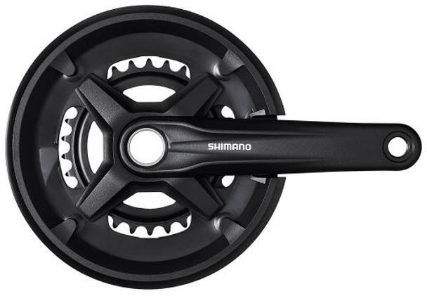 Shimano Altus FC-MT210-2 integrált tengelyes trekking hajtómű 30-46T, 170 mm, 2x9s, alumínium, LV, fekete FC-MT210 alsó kategóriás hajtómű hobbi trekking, városi kerékpárokra, nadrágszár védővel. Az eddigi legkedvezőbb árú integrált hajtómű a piacon. 170 mm-es alu hajtókar, szegecselt acél lánckerekekkel (nem bontható) 2x9 sebességes rendszerekkel kompatibilis Acél lán
