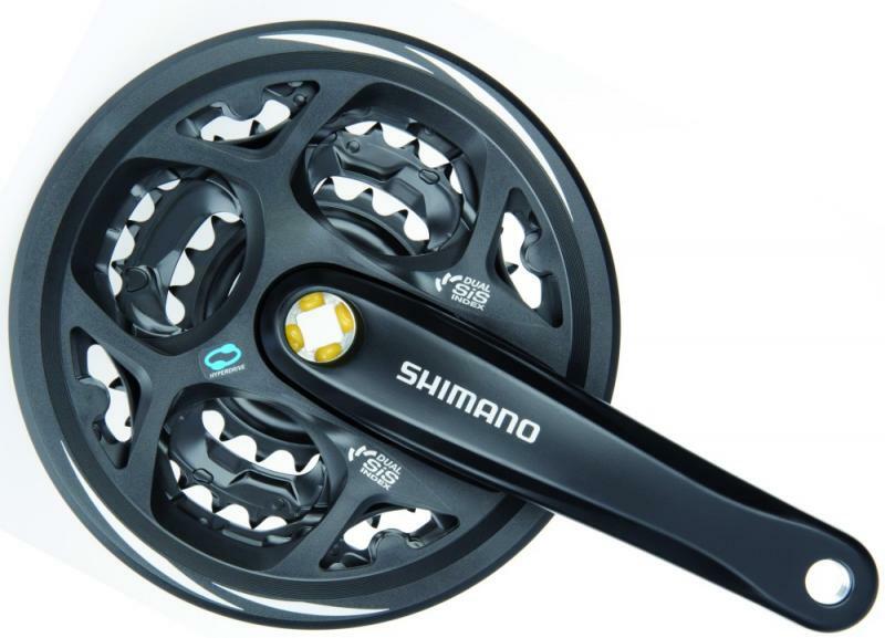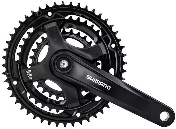 Shimano Tourney FC-TY701 négyszögtengelyes trekking hajtómű 28-38-48T, 170 mm, alumínium, fekete, doboz nélkül FC-TY701 belépő kategóriás négyszögtengelyes hajtómű MTB-re, trekking vagy városi kerékpárokra, nadrágszár védő nélkül. Dual-SIS kompatibilis, használható első pozícionált váltókhoz. Négyszögtengelyes tengelyrögzítés. 170 mm-es alu hajtókar, szegecselt