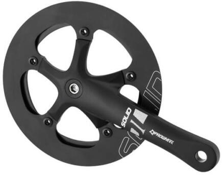 Prowheel Solid 244-AA-F négyszögtengelyes hajtómű, 44T, 1s, 175 mm, dupla láncvédő, fekete Közép kategóriás 1 sebességes hajtómű elsősorban városi, fitnesz kerékpárra. Négyszögtengelyes (JIS), javasolt tengelyszélesség: 122 mm Lánckompatibilitás: 3/32 col (6-7-8-9 sebesség Acél lánckerékkel, ami olcsó és tartós Lánckerék rögzítés: 130 mm-es lyukkör átmérő, 5