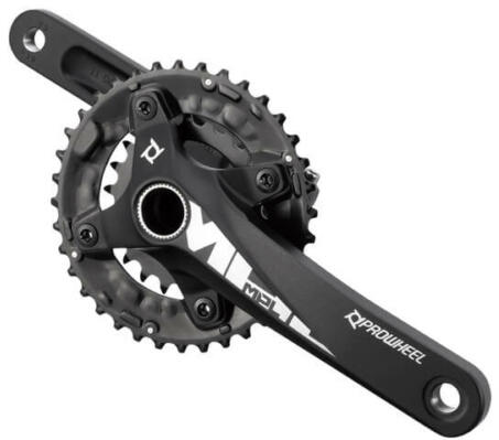 Prowheel MPL-501-TT integrált tengelyes MTB hajtómű 22-36T, 175 mm, 2x10s, alumínium, fekete Jó ár-érték arányú alsó-közép kategóriás hajtómű hobbi MTB kerékpárokra látványos megjelenéssel. Kar anyaga: kovácsolt 6061-T6 alumínium Felületkezelés: matt fekete anodizálás 9-10 sebességes rendszerekkel kompatibilis Acél kicsi és alu nagy lánckerék, csavaros rögzítés,