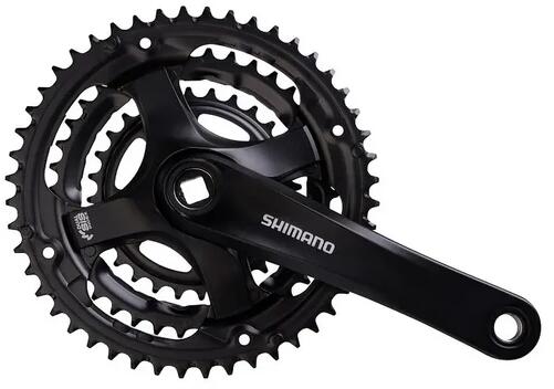 Shimano Tourney FC-TY501 négyszögtengelyes MTB hajtómű 24-34-42T, 170 mm, alumínium, fekete, doboz nélkül FC-TY501 belépő kategóriás, jó ár-érték arányú négyszögtengelyes hajtómű hobbi MTB, városi kerékpárokra, nadrágszár védő nélkül. 18, 21 és 24 sebességes kerékpárokon használható. Négyszögtengelyes rögzítés 170 mm-es alu hajtókar, szegecselt acél lánc