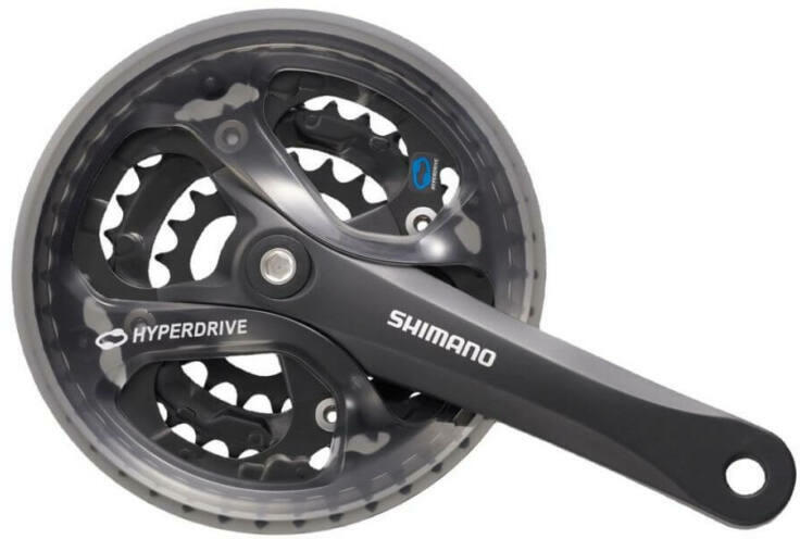 Megbízható minőségű Shimano hajtómű középkategóriás mtb és trekking kerékpárokhoz. Hajtókar anyaga alumínium, lántányérok: acél. Hajtókar hossza: 175 mm Fogszám: -48-38-28 -42-32-22 fogszámokkal Tengelytípus: négyszögtengely Hátsó fokozatszám: 7-8 Lánc: HG/UG