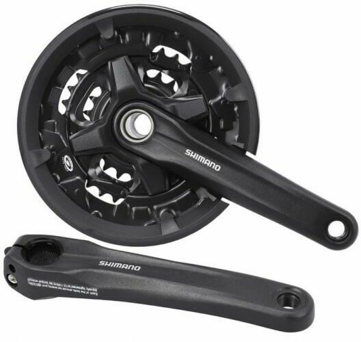 Shimano Altus FC-MT210-3 integrált tengelyes MTB hajtómű 22-32-44T, 175 mm, 3x9s, alumínium, LV, fekete FC-MT210 alsó kategóriás hajtómű hobbi MTB, városi kerékpárokra, nadrágszár védővel. Az eddigi legkedvezőbb árú integrált hajtómű a piacon. 175 mm-es alu hajtókar, szegecselt acél lánckerekekkel (nem bontható) 3x9 sebességes rendszerekkel kompatibilis Acél lánckereke