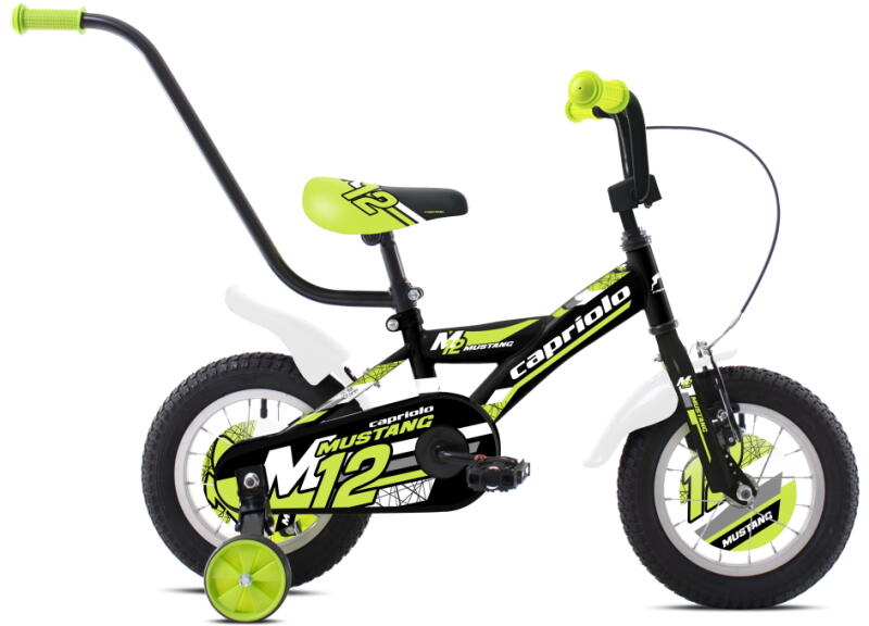 A Capriolo Mustang 12 gyermek kerékpár kiváló minőségű, modern gyermekbicikli, vonzó kivitelben. Ez a kerékpár tartós, acél vázzal rendelkezik, és számos funkcionális és biztonsági kiegészítővel rendelkezik, mint például sárvédők és puha ülés. A láncvédő és a megbízható V-fék, illetve a kontrafék biztonságot nyújt. A 3 éves kortól / 90 cm magas gyermekeknek