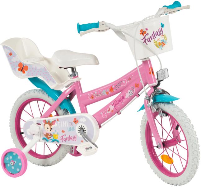 A Toimsa Fantasy 14 gyerek bicikli tökéletes választás azoknak a kislányoknak, akik szeretnek a figyelem középpontjában lenni, hiszen mindenki észre fogja venni, ha mellettük hajt el ezzel a bringával. Lenyűgöző dizájnja, strapabíró acélváza és 14-es felfújható kerekei kiváló menettulajdonságokat biztosítanak egyenetlen felületeken. A kerékpár számos praktikus és biz
