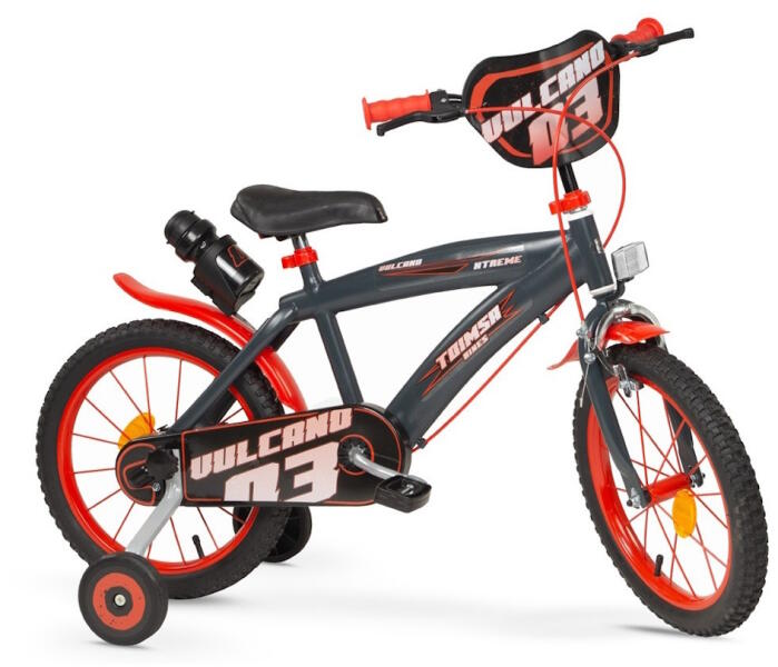 A Toimsa Vulcano 16" gyerekkerékpár ideális a fiatal kerékpárosok számára, akik szeretnék felfedezni a világot kerékpáron. A felfújható 16"-os kerekekkel és az 5 éves és annál idősebb gyermekek számára megfelelő vázmérettel ez a kerékpár kiváló választás kezdőknek . Az acél váz és villa nagy tartósságot és hosszú élettartamot biztosít. A kerékpár első fék
