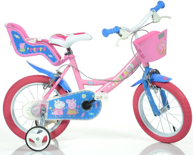 Peppa Malac rózsaszín kerékpár 14-es méretben Hivatalos magyarországi forgalmazótól. Leírás: Ez a kiváló Olasz minőségű kerékpár gyermeked kedvenc mesehőseivel, Peppa Malaccal és kedves családjával lett díszítve és a rózsaszín alapszín kiválóan passzol a kék kiegészítőkkel amely divatos megjelenést kölcsönöz a bringa számára. A biztonságról a masszív vázs
