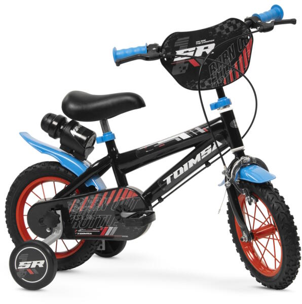 A Toimsa Sport 12" gyerek kerékpár ideális a kis kerékpárosok számára, akik szeretnék felfedezni a világot kerékpáron. A felfújható 12"-os kerekekkel és a 3 éves vagy annál idősebb gyermekek számára megfelelő vázmérettel ez a kerékpár kiváló választás kezdőknek . Az acél váz és villa nagy tartósságot és hosszú élettartamot biztosít. A kerékpár első féknyer