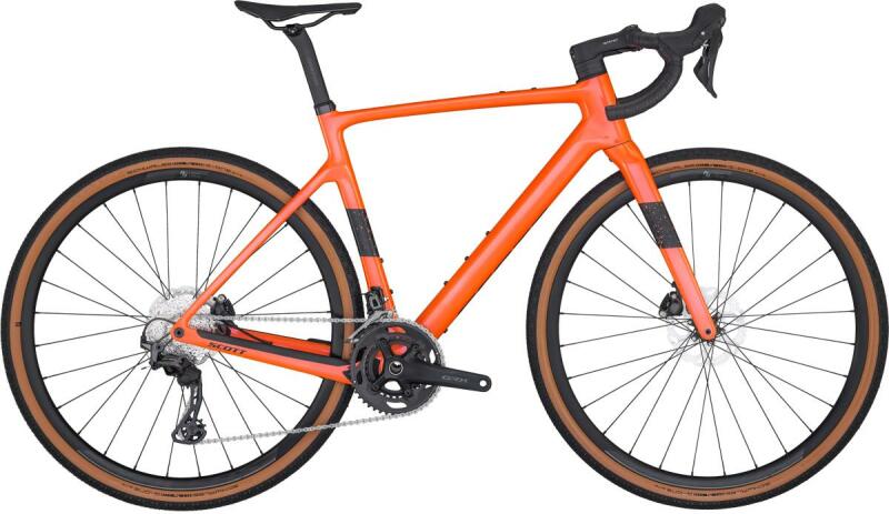 Gravel kerékpár sport és verseny felhasználásra. Karbon váz és villa. Shimano GRX hidraulikus tárcsafékkel felszerelve. Shimano GRX váltóval. Szélesebb gumikkal, rejtett bovdenezéssel. SCOTT Addict Gravel HMF karbon váz és villa Shimano GRX 820 első és GRX RX820 12 sebességes hátsó váltó Shimano GRX RX410 (160/160) hidraulikus tárcsafék Schwalbe G-One Bite 700x45C külső g