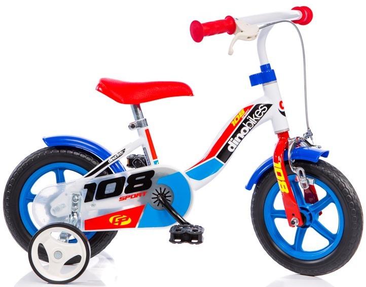 Gyermek bicikli Dino 108L - 10" fiú Gyártó: Dino Bikes Italy Bicikli a legkisebb gyerekek részére, akik szeretnének megtanulni biciklizni. A kerekek tömör gumival vannak ellátva, így kivédve a defekt lehetőségét, és egyszerűsíti a karbantartást, mivel nincs szükség a kerekek felfújására. A biciklin nincs fék!!! Pótkerekekkel ellátva Bicykli súlya 5,1 kg. A biciklit szé