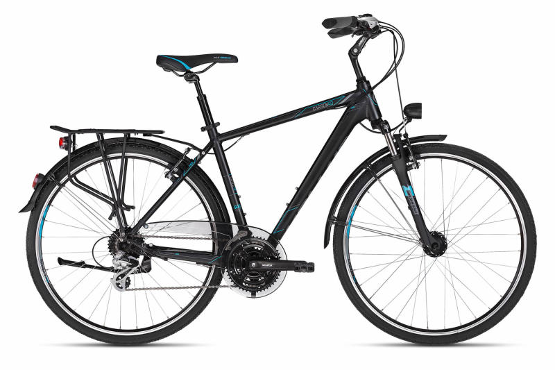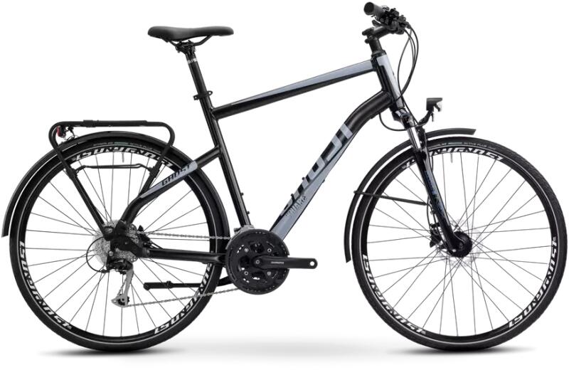 Trekking bringa. Sárvédővel, csomagtartóval, kitámasztóval, agydinamóval és világítással szerelve. Városi felhasználásra és könnyebb túrákra. Shimano Altus/Tourney váltóval és Tektro V-fékekkel. Aluminium 6061 Onroad Disc frame SR Suntour M3010 700C villa, 40 mm rugóúttal Shimano Altus M310 hátsó és Tourney TY601 első váltó Tektro 837 V-fék Vittoria Randonneur (622-4