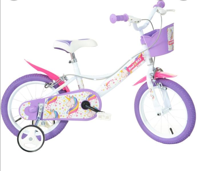Bimbo Kerékpár 16-os Mtb 1 Sebességes lány unikornisBimbo Kerékpár 16-os Mtb 1 Sebességes lányMéret: 16" váz anyaga: ACÉL, villa: MEREV VILLA, felszereltség: első és hátsó sárvédő, láncvédő, támkerék, mintás műanyag design elem a kormányon, láncvédő design elem a hajtóművön, első-hátsó fék, felni: fém 16, gumi: felfújható 400m/m, pedál: műanyag. Felszerelt