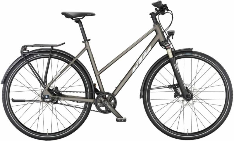 A KTM Life Tour 2023 egy kiváló trekking kerékpár, amely ideális választás a mindennapi közlekedésre és a hosszú távú túrákra. A könnyű alumínium váza stabilitást és kényelmet nyújt, miközben a Suntour NCX-E Air teleszkópos villa 63 mm-es rugóútja segíti a terep egyenetlenségeinek elsimítását. A kerékpár ergonomikus kialakítású markolatai csökkentik a csuklók