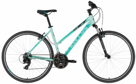 váz KELLYS Crosslite Lady alumínium villa SR SUNTOUR M3010, 50mm, coil spring kormánycsapágy félintegrált monoblokk négyszögtengelyes (124.5mm) hajtómű PROWHEEL (48x38x28T) ? hajtókar hossz: 170mm váltókarok SHIMANO ST-EF41-7 EZ-fire Plus e. váltó SHIMANO TY710 (31.8mm váz átmérőhöz) h. váltó SHIMANO TY300 (direct mount) fokozatok száma 21 (elöl 3, hátul 7 sebesség) kazet